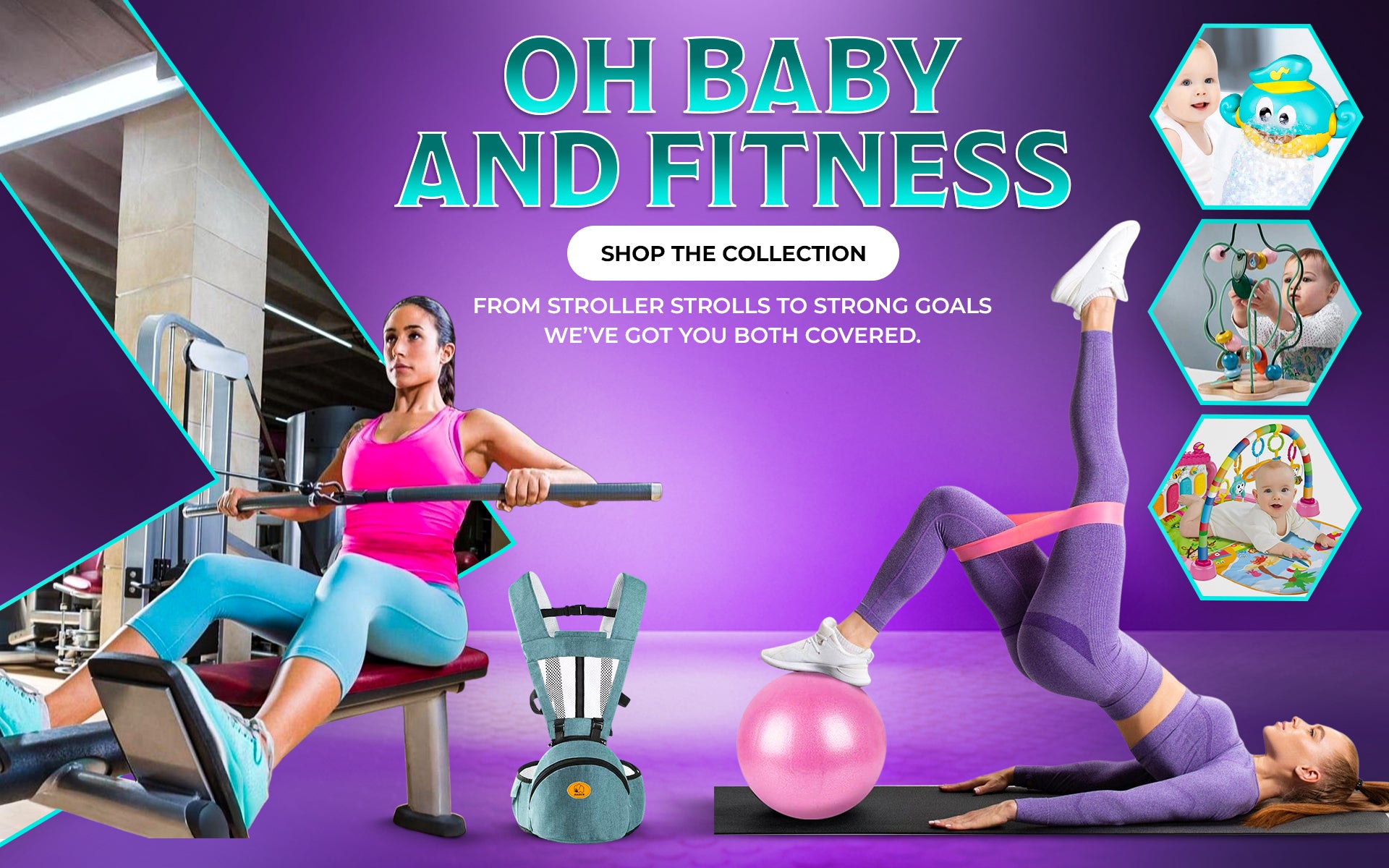 Strong bodies. Happy babies. Confident you. Oh Baby and Fitness brings together baby essentials and fitness finds designed to support your journey. Moms do it all, and deserve it all. We're here to support you from every stretch and snuggle along the way. Don't forget to stop by our Clever Kitchen and Pretty Little Things Collection. You never know what you'll find.